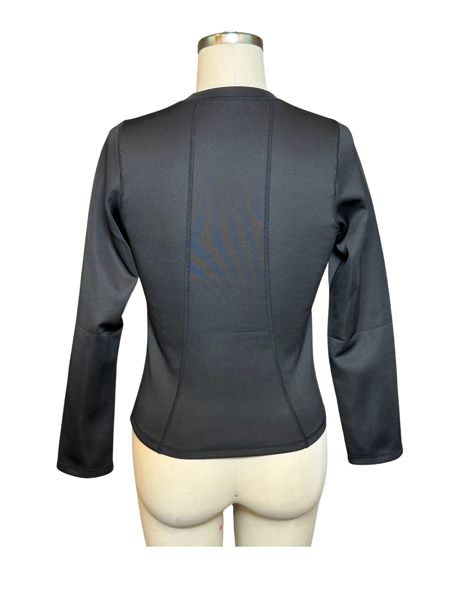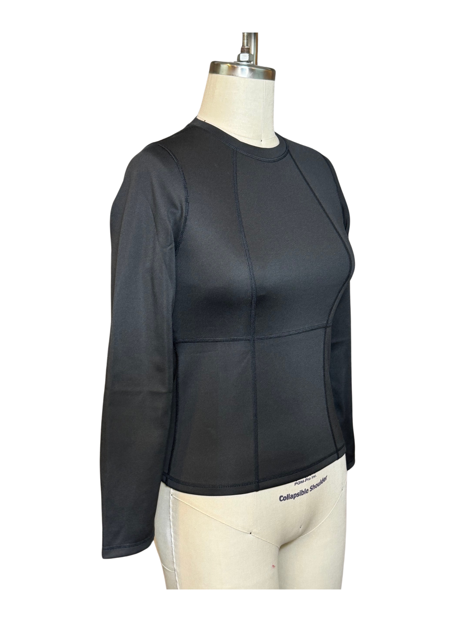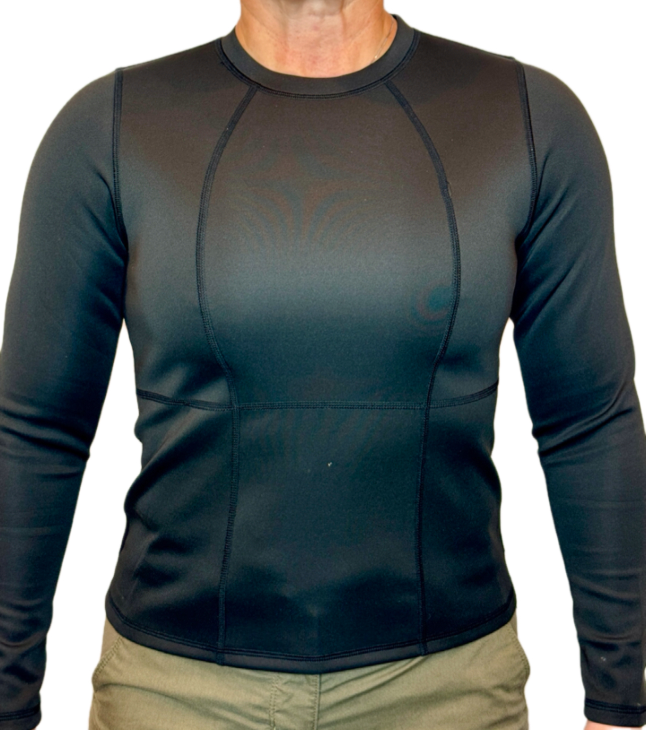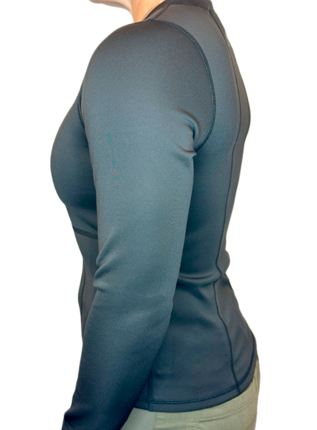 The Long-Sleeve women’s compression shirt is an excellent for choice for wearing under nursing scrubs, in medical offices, or in cooler weather. Made from the same high-quality and breathable fabric that offers a snug yet flexible fit as our short-sleeve shirts. One Less Layer provides a gentle compression base layer under your uniform using a minimalist design in soft, moisture-wicking material making it perfect for those long days at work. This shirt is currently offered in black or white.